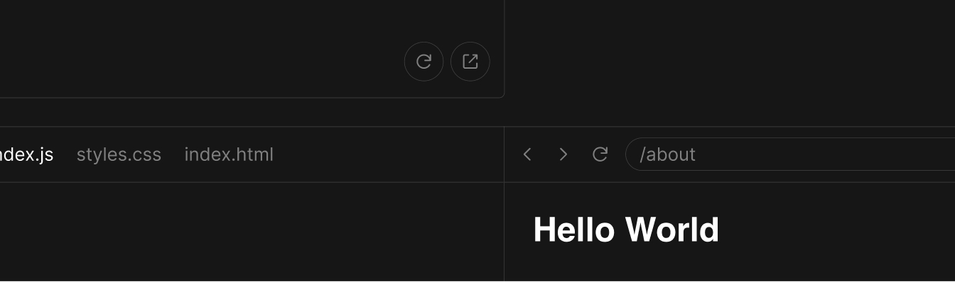 import { SandpackProvider, SandpackLayout, SandpackPreview, SandpackCodeEditor, } from "@codesandbox/sandpack-react"; export default () => ( <SandpackProvider template="react"> <SandpackLayout> <SandpackCodeEditor showTabs showLineNumbers={false} showInlineErrors wrapContent closableTabs /> <SandpackPreview /> </SandpackLayout> </SandpackProvider> );
