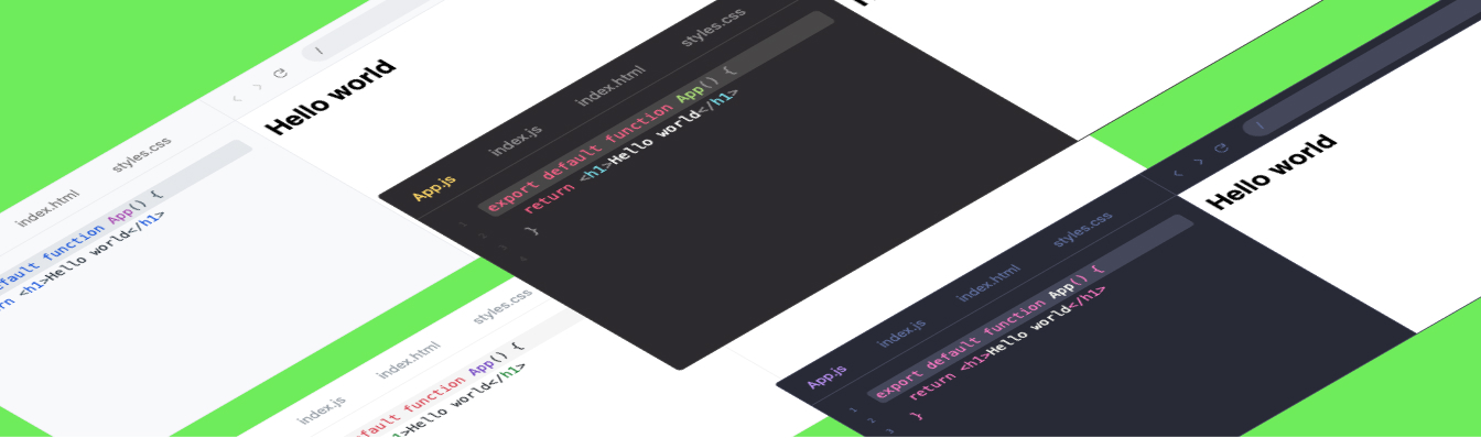 The overall style can be set through the theme prop. Sandpack offers a set of predefined options, but individual values can be passed to customize the style of your Sandpack instance. Besides the included themes, you can also consume a set of themes from @codesandbox/sandpack-themes, an open-source package that contains many other themes compatible with Sandpack.